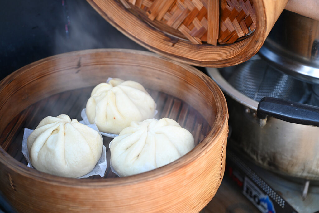 サイドメニューの肉まんが蒸し器の中でふっくらと蒸し上がるシーンも撮影。